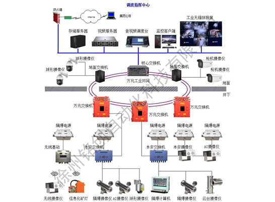 視頻監(jiān)控及大屏顯示系統(tǒng)可以實(shí)現(xiàn)地面監(jiān)控人員直接對(duì)井下情況進(jìn)行實(shí)時(shí)監(jiān)控,能直觀的監(jiān)視和記錄井下工作現(xiàn)場(chǎng)的安全生產(chǎn)情況,能及時(shí)發(fā)現(xiàn)事故苗子,防患于未然,也能為事后分析事故提供有關(guān)的第一手圖像資料。系統(tǒng)根據(jù)實(shí)際井下應(yīng)用情況,使用多種傳輸方式包括光纖、網(wǎng)線、雙絞線、WiFi/4G/微波無(wú)線等;多種產(chǎn)品類型包括隔爆攝像儀、本安攝像儀、AI攝像儀、執(zhí)法儀、PDA、信息化礦燈等;多種供電方式來(lái)選擇相應(yīng)的監(jiān)控產(chǎn)品?;凇霸啤⑦?、端”結(jié)構(gòu)的煤礦大腦,可實(shí)現(xiàn)人工智能監(jiān)控。配合多種形式存儲(chǔ)服務(wù)器、流媒體服務(wù)器、視頻解碼及多途徑顯示方式形成完整的煤礦視頻監(jiān)控系統(tǒng)。