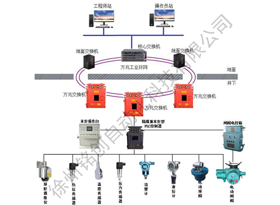 礦用排水監(jiān)控系統(tǒng)采用可編程控制器(PLC)進(jìn)行控制,通過圖形、圖像、曲線、數(shù)據(jù)、文字等方式,實(shí)時(shí)準(zhǔn)確地反映系統(tǒng)工作狀態(tài)以及水倉水位、電機(jī)工作電流、電機(jī)溫度、軸承溫度、排水管流量、水泵狀態(tài)等參數(shù)。根據(jù)水倉的實(shí)時(shí)參數(shù)控制水泵輪流工作與適時(shí)啟動(dòng)備用水泵,實(shí)現(xiàn)水泵按照水艙水位的高低和供電線路載荷情況自動(dòng)啟停、自動(dòng)輪詢、避峰填谷。同時(shí),系統(tǒng)通過傳輸設(shè)備聯(lián)網(wǎng),可以實(shí)現(xiàn)多泵站無人值守,大大降低礦井泵站運(yùn)行人工費(fèi)用,節(jié)能減排,減員增效,有效提高礦井安全生產(chǎn)和自動(dòng)化控制水平。